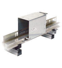 Wózek prowadzący WCS2, zapewnia optymalne ustawienie głowicy czytającej i szyny kodowej, z zamontowaną płytą montażową dla głowicy czytającej, możliwość zastosowania szczotek do czyszczenia, rolki metalowe