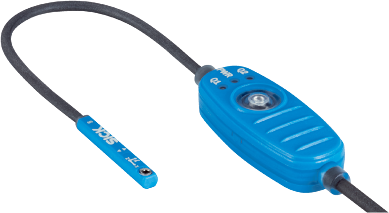 Magnetyczny czujnik położenia SICK ze złączem M12, zakres pomiarowy 50 mm, wyjście IO-Link, powtarzalność 0,05 mm, rozdzielczość 0,01 mm, Teach-in, obudowa PA, IP67, wskaźnik LED.