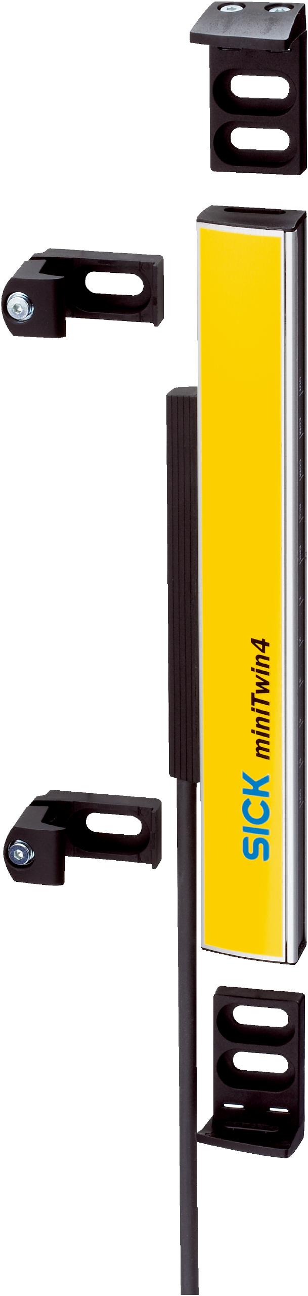 Optoelektroniczne kurtyny bezpieczeństwa, miniTwin, C4MT-04224ABB03DE0, Część systemowa: 1 Twin-Stick, Przeznaczenie: miniTwin4 jako urządzenie autonomiczne, miniTwin4 jako ostatni gość dla kaskady podwójnej i potrójnej, Sposób zamocowania: Mocowanie C-Fix lub L-Fix, Poziom bezpieczeństwa: PL e, SIL 3, Typ 4, Rozdzielczość: 24 mm, Zasięg: 5 m, Wysokość pola ochronnego: 420 mm, Typ przyłącza: Wtyk M12, 5-biegunowy, Stopień ochrony: IP65, Zakres dostawy: Twin Stick, Wtyk systemowy, Uchwyt C-Fix i L-Fix, 2 szt. każdy, Pręt kontrolny o średnicy odpowiadającej rozdzielczości optoelektronicznej kurtyny bezpieczeństwa, Instrukcja bezpieczeństwa, instrukcja montażu, Instrukcja eksploatacji do pobrania