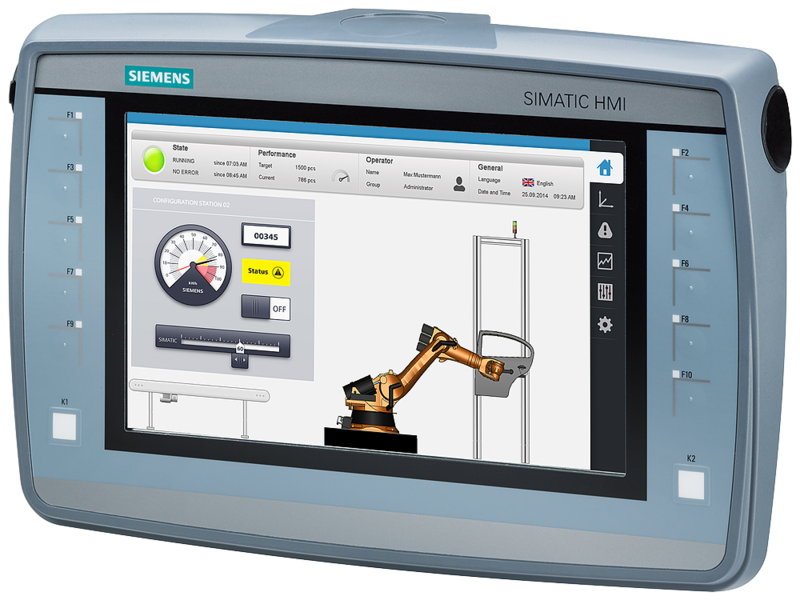 SIMATIC HMI KTP700 MOBILE, 7,0-calowy wyświetlacz TFT, 800x480 pikseli, 16 milionów kolorów, obsługa za pomocą przycisków i przycisków dotykowych, 8 klawiszy funkcyjnych, 1x interfejs Profinet/przemysłowy Ethernet, 1x karta multimedialna, 1x USB