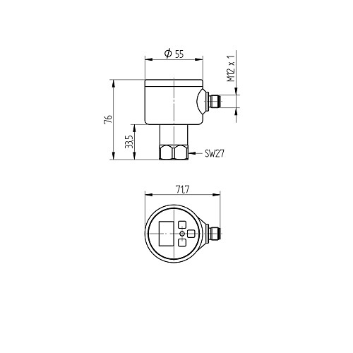 Czujnik ciśnienia firmy Wenglor, zakres pomiarowy = -0,5...0 bar, błąd pomiarowy = < ± 0,5 %, temp. medium = -25...80 °C, przyłącze procesowe = G 1/8", konektor M12-4 pin, wyjście PNP/ NO lub NC