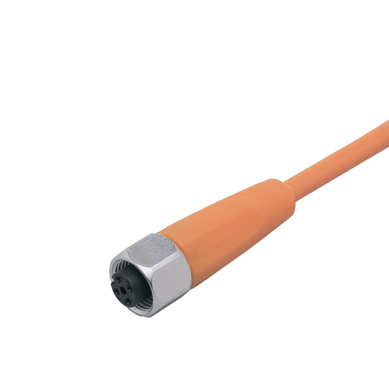 Przewód z gniazdem firmy IFM, długość przewodu 2 m PVC, konektor M12 żeński, 5-pinowy, 5 x 0,34 mm2 (42 x średnica 0,1 mm)
