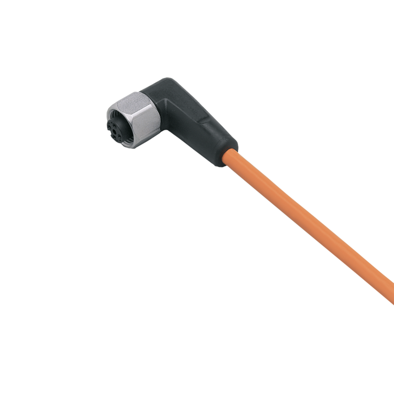 Przewód z gniazdem firmy IFM, długość przewodu 30 m PVC, konektor M12 żeński, 4-pinowy, 4 x 0,34 mm2 (42 x średnica 0,1 mm) stan wyjścia: 2 x LED kolor żółty, działanie: 1 x LED kolor zielony