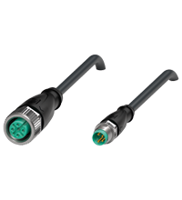 | Cordset M12 socket straight to M8 plug straight A-coded, 4-pin, PUR cable black, UL-approved, drag chain suitable, torsion resistant |