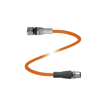 | Cordset M12 socket straight A-coded LED 4-pin to M12 plug straight A-coded 4-pin, POC cable welding-bead resistant orange, suitable for robotic applications, torsion resistant, oil resistant, molecularly cross-linked |