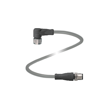 | Cordset M12 socket angled to M12 plug straight A-coded, 4-pin, PUR cable grey |