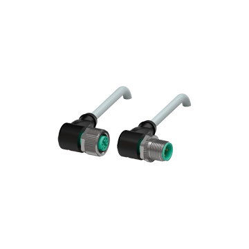 | Cordset M12 socket angled to M12 plug angled A-coded, 4-pin, PVC cable grey |