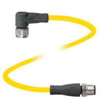 | Cordset M12 socket angled to M12 plug straight A-coded, 4-pin, PVC cable yellow, UL approved |