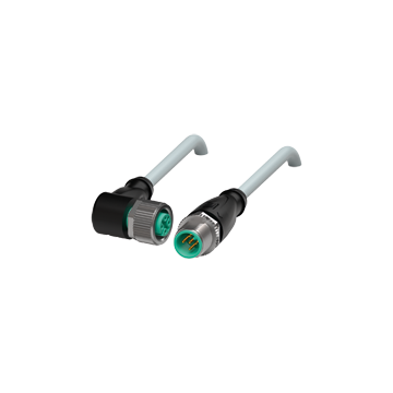 | Cordset M12 socket angled to M12 plug straight A-coded, 5-pin, PVC cable grey |