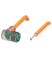 | Female cordset single-ended M12 angled A-coded, LED 5-pin, PUR cable welding-bead resistant orange, UL approved, drag chain suitable, torsion resistant |