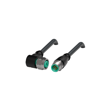 | Cordset M12 socket angled to M12 plug straight stainless steel 1.4404, A-coded, 5-pin, PUR cable black, UL approved, drag chain suitable, torsion resistant |