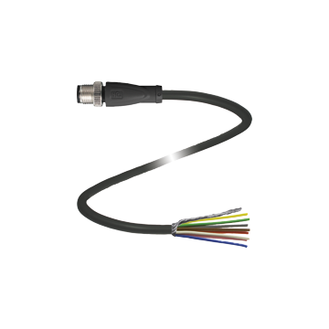 | Male cordset single-ended M12 straight A-coded, 8-pin, PUR cable black, shielded, UL-approved, drag chain suitable |