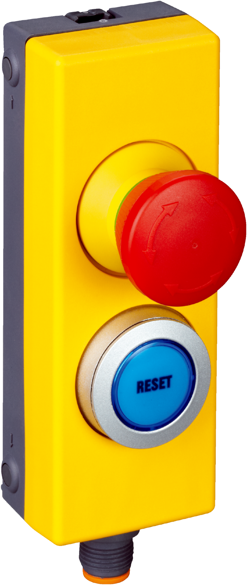 Wyłącznik bezpieczeństwa, ES11, ES11-SC4D8, Część systemowa: Urządzenie kompletne, Zestyk rozwierny o wymuszonym otwarciu: 2, Styk normalnie otwarty: 1, Typ przyłącza – szczegóły: Złącze wtykowe, M12, 8-biegunowe, Bezpieczna kaskada czujników: Z Flexi Loop (z diagnostyką), Przycisk zatrzymania awaryjnego (opcjonalne podświetlenie): nie, Przycisk reset (opcjonalne podświetlenie): tak