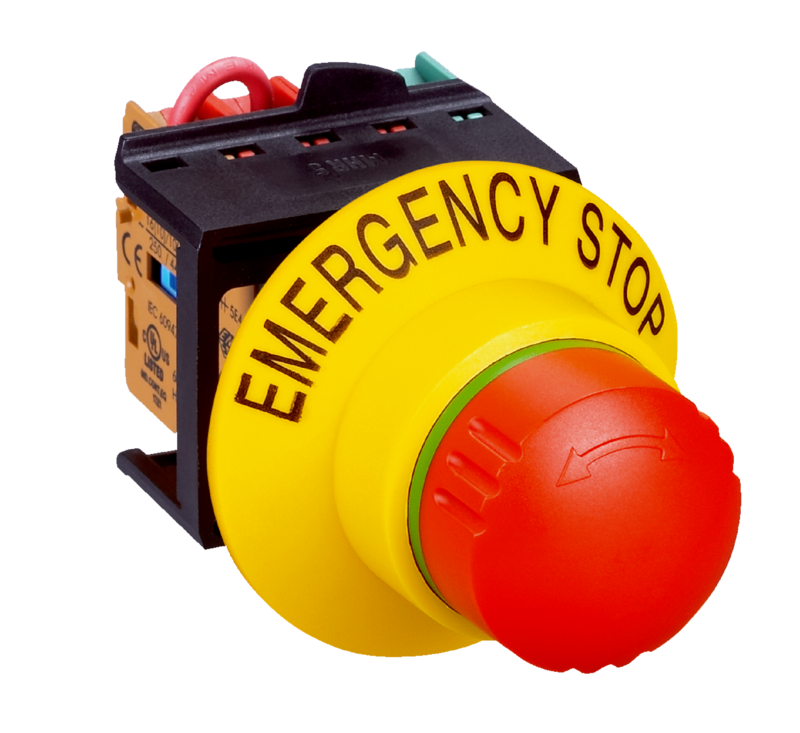 Wyłącznik awaryjny SICK, do zabudowy, 2 DC, 1 NO, listwa zaciskowa, IP54, opcjonalne podświetlenie, zabezpieczenie przed zablokowaniem, 3A/250V AC.