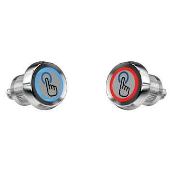 Pojemnościowy przycisk dotykowy, średnica otworu O22 mm, wykonie standard, PNP/NC, funkcja czas impulsu = czas kontaktu, LED niebiesko/czerwony, zasilanie 20-30VDC, 3-przewodowy, kabel 2 m, stal nierdzewna, IP67/69K