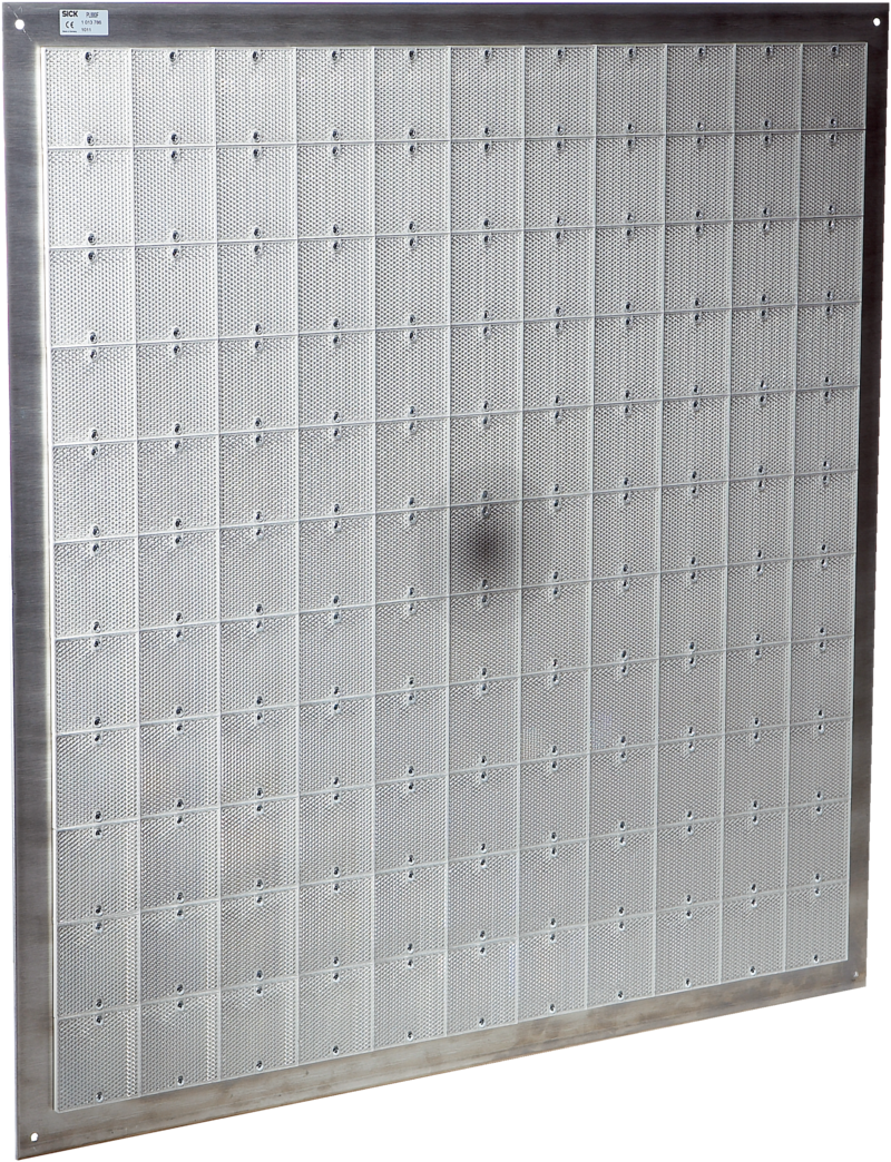 Odbłyśnik SICK, aluminiowy, 1000x1000x12,5 mm, folia filtracyjna na środku, efekt polaryzacji, temp. –25 °C do +65 °C, masa 11,306 kg, montaż przykręcany.