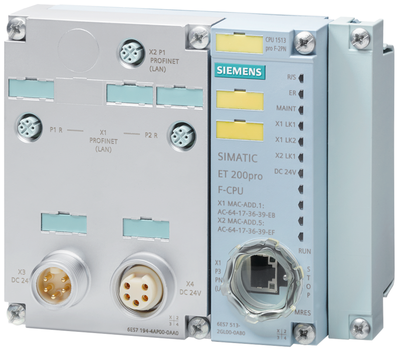 SIMATIC ET 200PRO, JEDNOSTKA CENTRALNA FAIL-SAFE CPU 1513PRO F-2 PN, PAM. WORK: 450 KB NA PROGRAM I 1.5 MB NA DANE; INTERFEJSY: X1: PROFINET IRT(2 X M12, 1 X RJ45),X2: PROFINET RT(1 X M12); PRZETWARZANIE OPERACJI BITOWYCH: 40 NS, STOPIEŃ OCHRONY:IP65/67