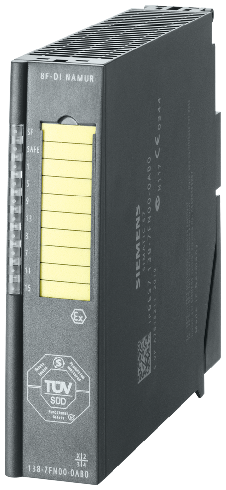 SIMATIC, MODUŁ ELEKTRONICZNY FAIL-SAFE DO ET200ISP, 8 F-DI NAMUR EX I, DO KATEGORII 4 (EN954-1)/ SIL3 (IEC61508)/ PLE (ISO13849), EX IB (IA GA) IIC T4 GB, EX IB [IA IIIC DA] IIC T4 GB, EX IB [IA] I MB