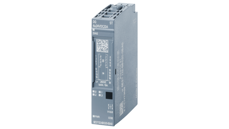 Moduł DQ 4x 24VDC/2A - 6ES7132-6BD20-0BA0, przystosowany do podstawek typu A0, posiada 4 wyjścia cyfrowe przetwarzające sygnały wyjściowe o napięciu 24 V DC/2 A. Ten moduł wyjść cyfrowych SIMATIC ET 200SP - 6ES7132-6BD20-0BA0 firmy Siemens zapewnia niezawodne działanie w aplikacjach przemysłowych.