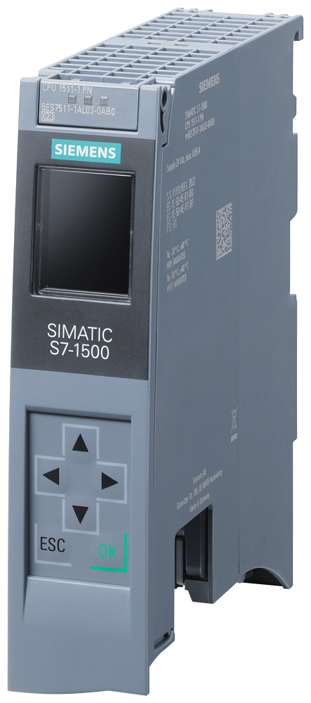 SIMATIC S7-1500, JEDNOSTKA CENTRALNA CPU 1511-1 PN, PAMIĘĆ WORK: 300 KB NA PROGRAM I 1.5 MB NA DANE, INTERFEJSY: PROFINET/ETHERNET (SWITCH 2 X RJ45; OBSŁUGA TRYBU IRT); PRZETWARZANIE OPERACJI BITOWYCH: 25 NS, WYMAGANA KARTA PAMIĘCI SIMATIC MEMORY CARD