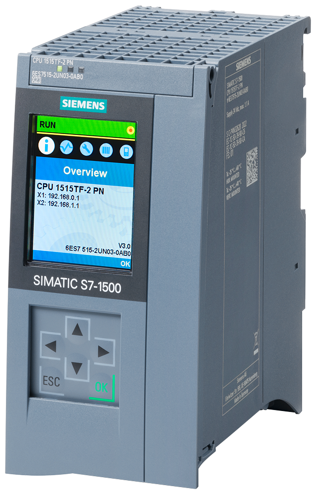 SIMATIC S7-1500T, JEDNOSTKA CENTRALNA TECHNOLOGICZNA FAIL-SAFE CPU 1515TF-2 PN, PAMIĘĆ WORK: 1.5 KB NA PROGRAM I 4.5 MB DANE, INTERFEJS: PROFINET/ETHERNET (SWITCH 2 X RJ45; OBSŁUGA TRYBU IRT), ETHERNET (1 X RJ45); PRZETWARZANIE OPERACJI BITOWYCH: 6 NS