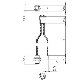 Światłowód firmy Wenglor, długość 0,5 m, materiał osłony światłowodu mosiądz niklowany, max. temperatura otoczenia 0...60 °C