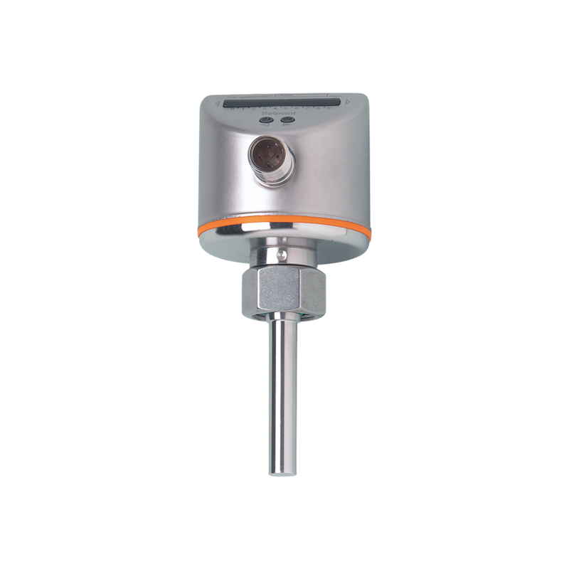 Kalorymetryczny sygnalizator przepływu firmy IFM, wyjście 2 x PNP, Zakres ustawień 3...300 cm/s, temp. medium -15...70 °C, max. ciśnienie 300 bar, M18 x 1,5 wewn., podłączenie elektryczne konektor M12