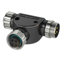 | Podłączenie | Konektor: 2 x M12; kodowanie: A; Materiał obudowy: TPU; Nakrętka: mosiądz, niklowany; Styki: pozłacane; Moment dokręcający: 0,5 Nm | |