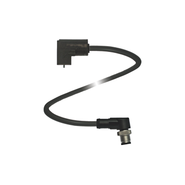 | Valve connector Form C (Ind), Z-diode LED 2-pin+PE to M12 plug angled A-coded 3-pin, PUR cable black, drag chain suitable |