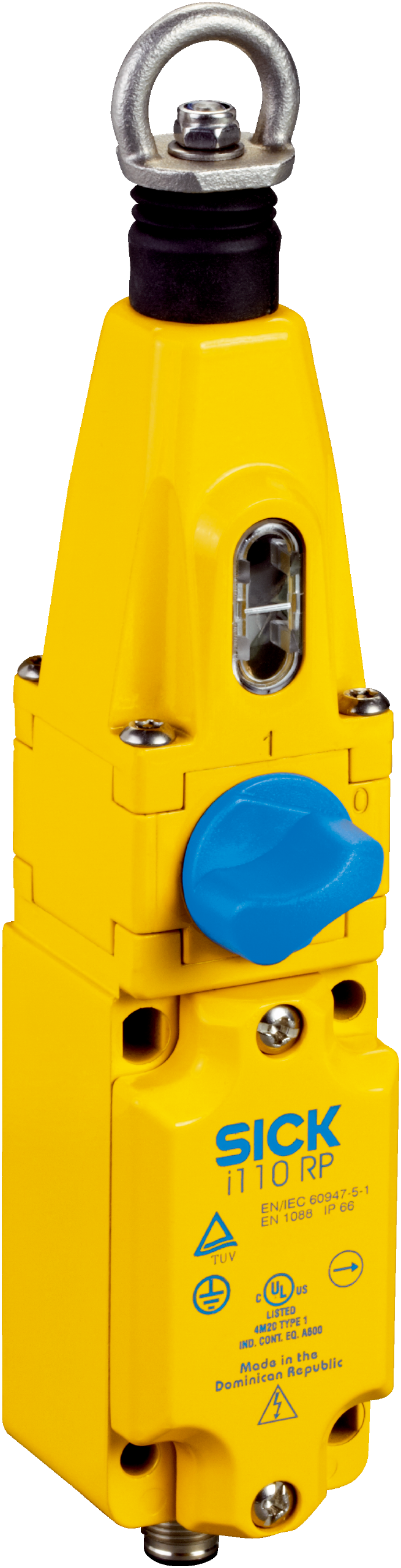 Wyłącznik bezpieczeństwa, i110RP, i110-RP224, Zestyk rozwierny o wymuszonym otwarciu: 2, Styk normalnie otwarty: 0, Typ przyłącza – szczegóły: Złącze wtykowe, M12, 4-biegunowe, Bezpieczna kaskada czujników: Z Flexi Loop (z diagnostyką), Maksymalna długość liny: 30 m