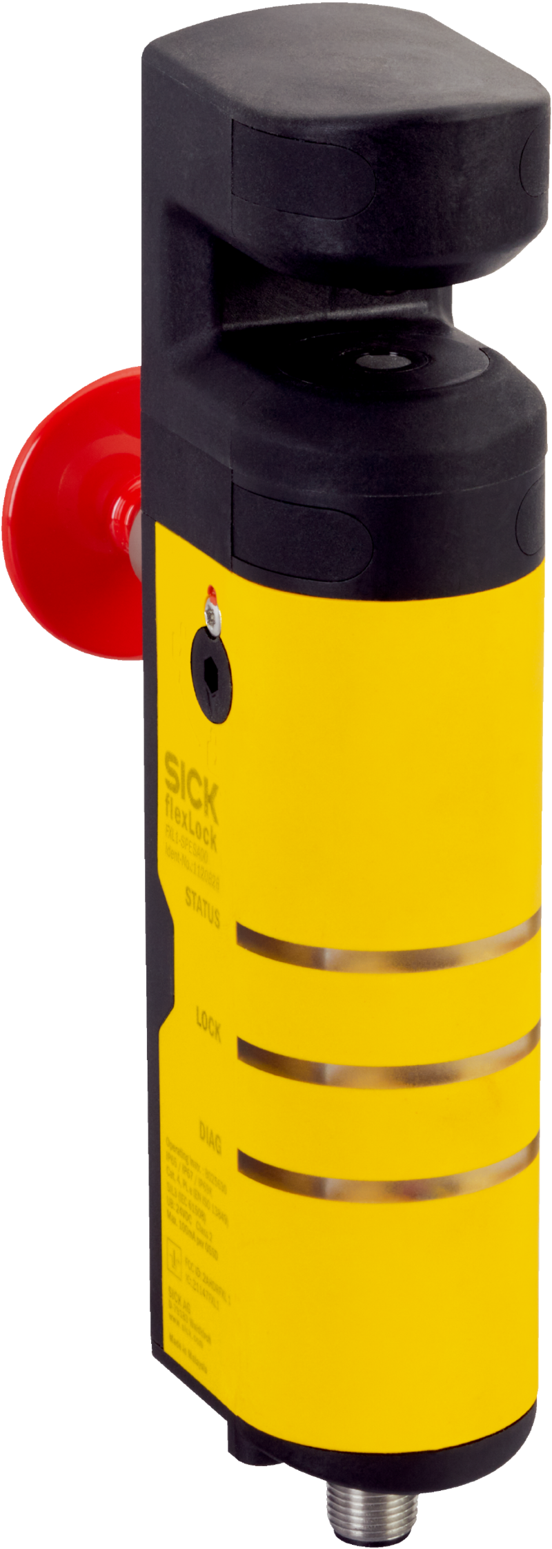 Wyłącznik bezpieczeństwa SICK flexLock RFID, blokowanie power to release, uniwersalne kodowanie, siła blokująca 30 N, IP69K, odblokowanie pomocnicze/ewakuacyjne, PL e, SIL 3.